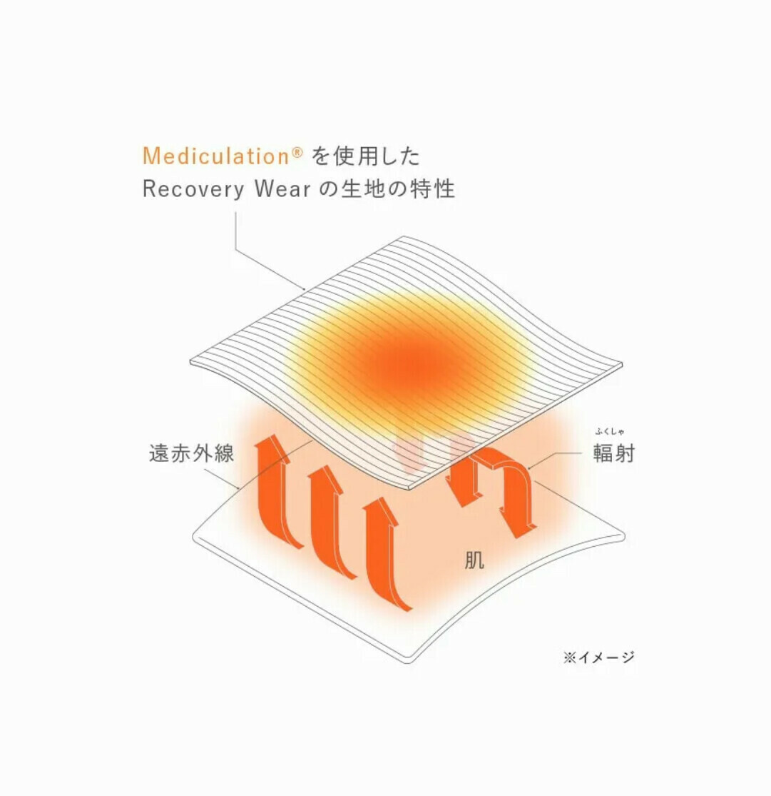 天然鉱石を原料とした非金属・高純度セラミックを糸に練り込んだ特殊繊維Mediculation®が、体から放出される遠赤外線(体温)をふく射。これにより血行を促進し、疲労回復やコリ緩和をサポートします。