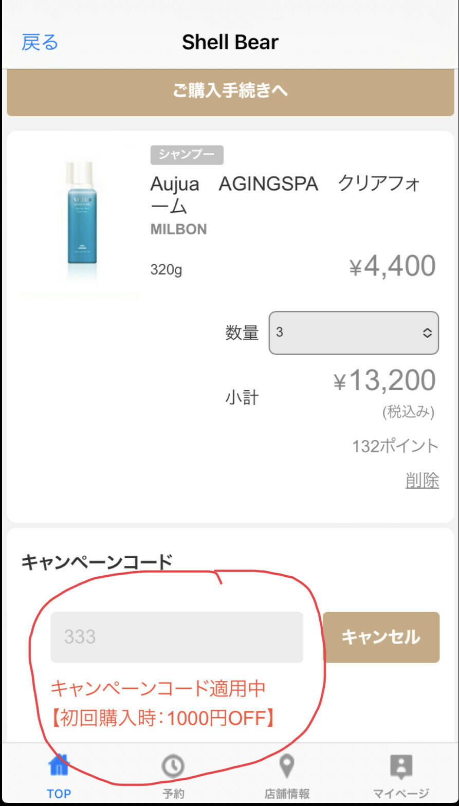 購入時に「333」の3桁のキャンペーンコードを入れるだけ♪10,000円以上の購入で1,000円OFFになります♪